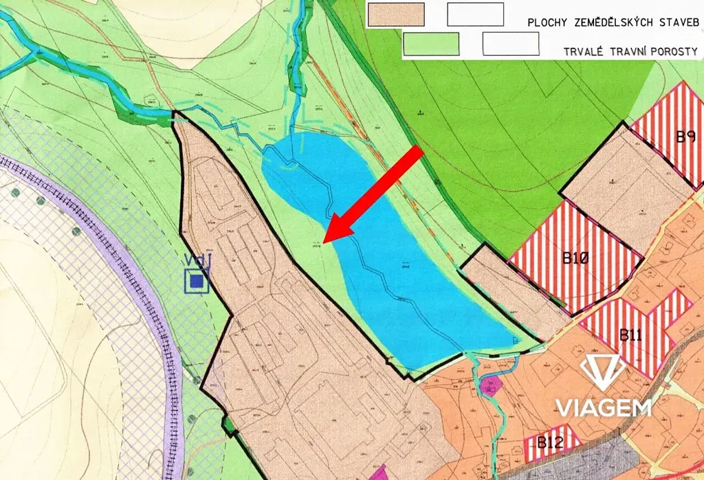 - Parcelní číslo 3209 (502 m², 17% podíl = 84 m², trvalý travní porost)