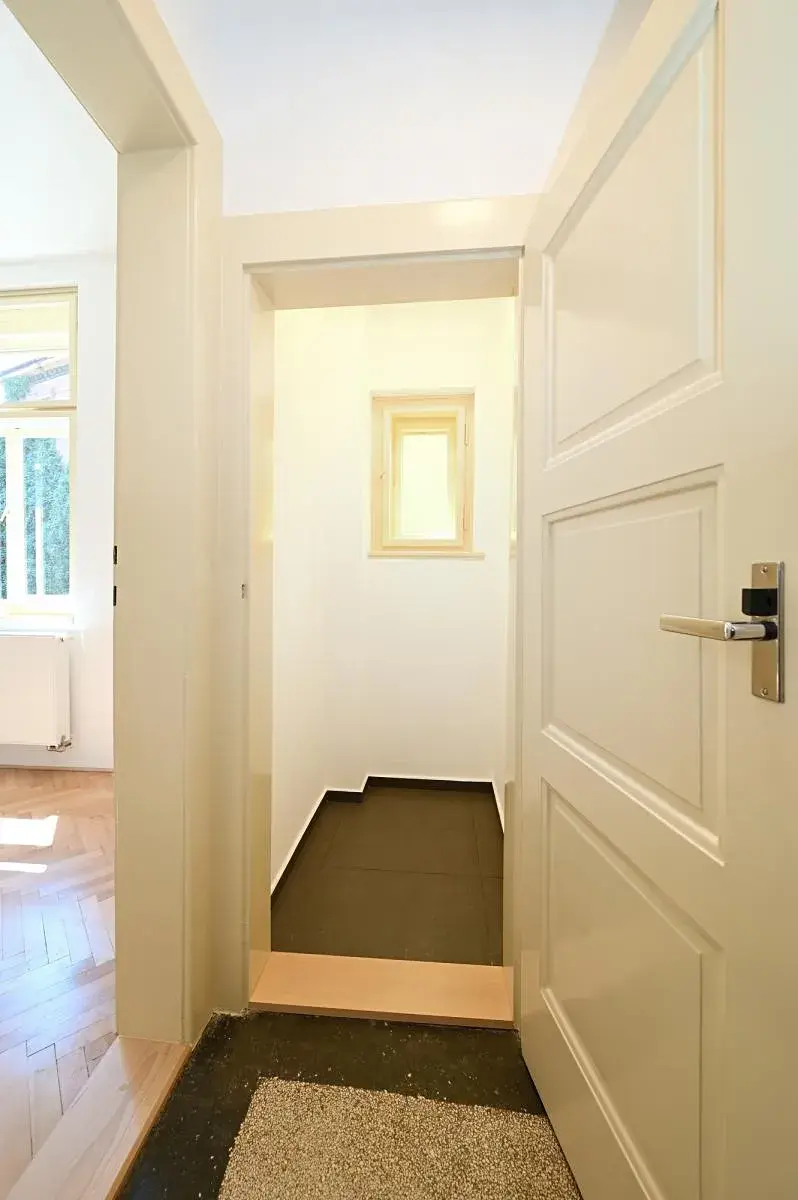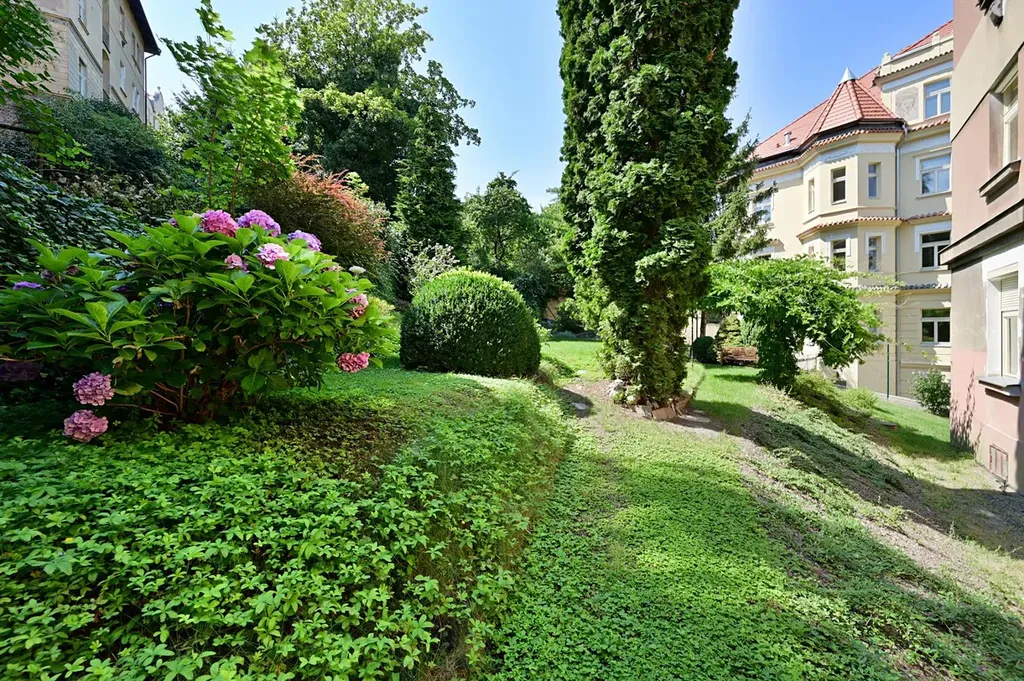 Nová rekonstrukce byt 1+kk s jihozápadními okny do zahrady, která je přístupná pro obyvatele domu. Velmi tichý byt, stejně tak se v celém domě dbá na klid.