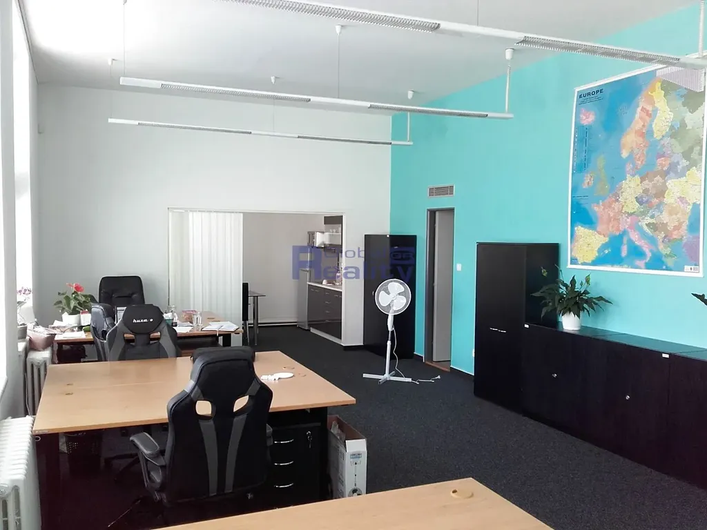 Budova v níž se kanceláře nacházejí prošla také celkovou rekonstrukcí a zateplením (PENB - "A"). Prostory se sestávají z hlavní velké kanceláře o výměře cca 45 m2, skladu či archivu o výměře cca 10 m2, sociálního zařízení vč. sprchového koutu, úklidové místnosti a kuchyňky o výměře cca 10 m2. V prostorách jsou plastová okna, zátěžový koberec, osvětlení, klimatizace a trezor. Prostory sousedí s chodbou o výměře cca 20 m2, o které lze prostory rozšířit a použít jako další sklad či archiv.