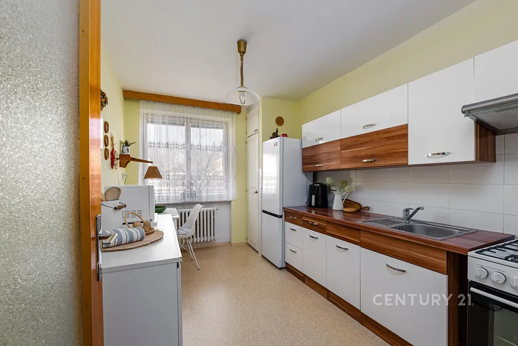 Byt se nachází ve druhém patře čtyřpatrového cihlového domu bez výtahu. Jedná se o klidné místo pro rodinné bydlení. Velkou výhodou je oplocený pozemek, možnost parkování před garáží a prostorná garáž.