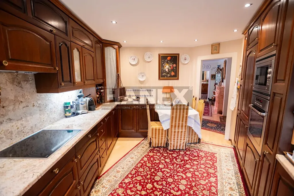 Dům s užitnou plochou 365 m2 se rozprostírá na lichoběžníkovém pozemku o velikosti 1.259 m2, z toho zastavěná plocha činí 201 m2 a zahrada 1.058 m2.