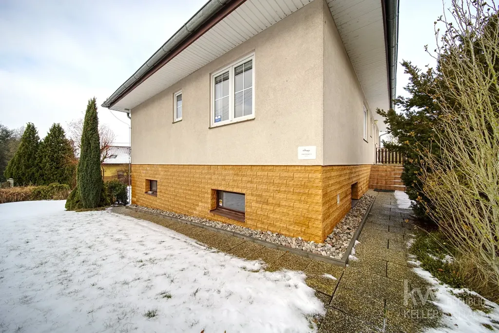 Dům má dvě nadzemní podlaží, neobytnou půdu, zahradu o velikosti 860m2, zděnou pergolu s krbem, terasu a prostornou garáž pro dvě auta.