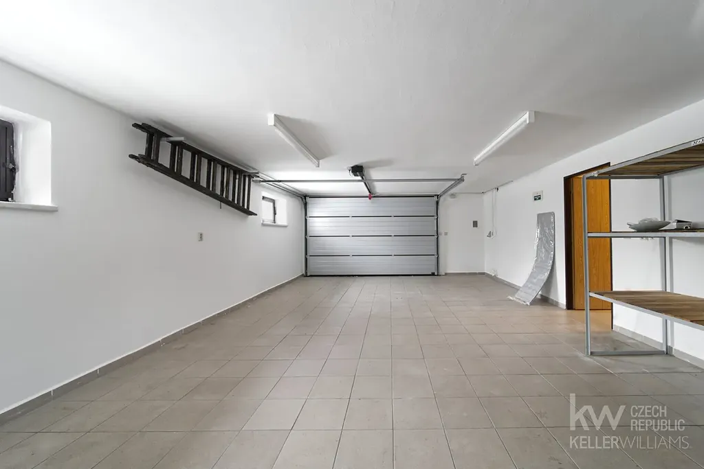 1. patro: dvě místnosti, dva úložné prostory, vstup do garáže, technická místnost, která zároveň slouží jako prádelna a samostatná toaleta.
