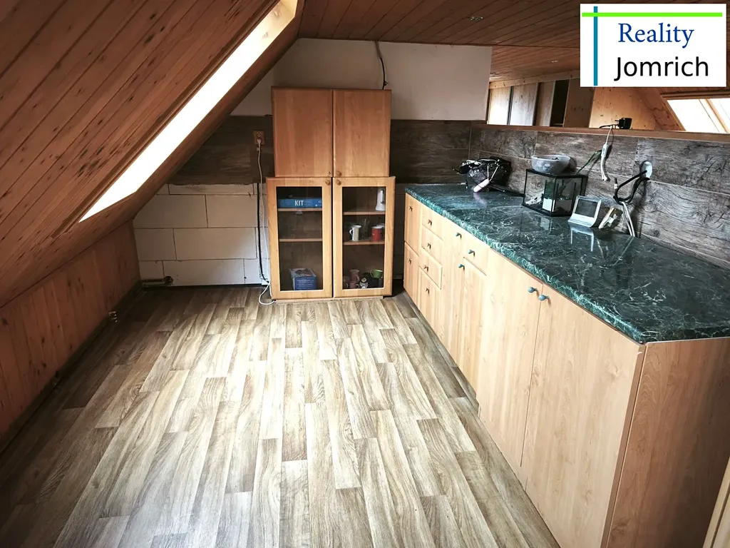 Přízemí: byt 2+kk s koupelnou a WC přes chodbu, ca 42 m2, aktuálně obsazený nájemníkem, který se může do tří měsíců vystěhovat. V přístavbě se nachází technické zázemí, kotelna a dílna.