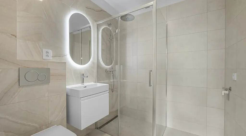 Dispozici tvoří vstupní hala, prostorná koupelna, ložnice a obývací pokoj s kuchyňskou linkou. Topení i ohřev vody zajišťuje elektrický kotel. V bytě jsou použity kvalitní vinylové podlahy, sanita , zařizovací předměty značky Grohe a obklady českého výrobce RAKO. Součástí je také plně vybavená kuchyňská linka od německého výrobce Nobilia.