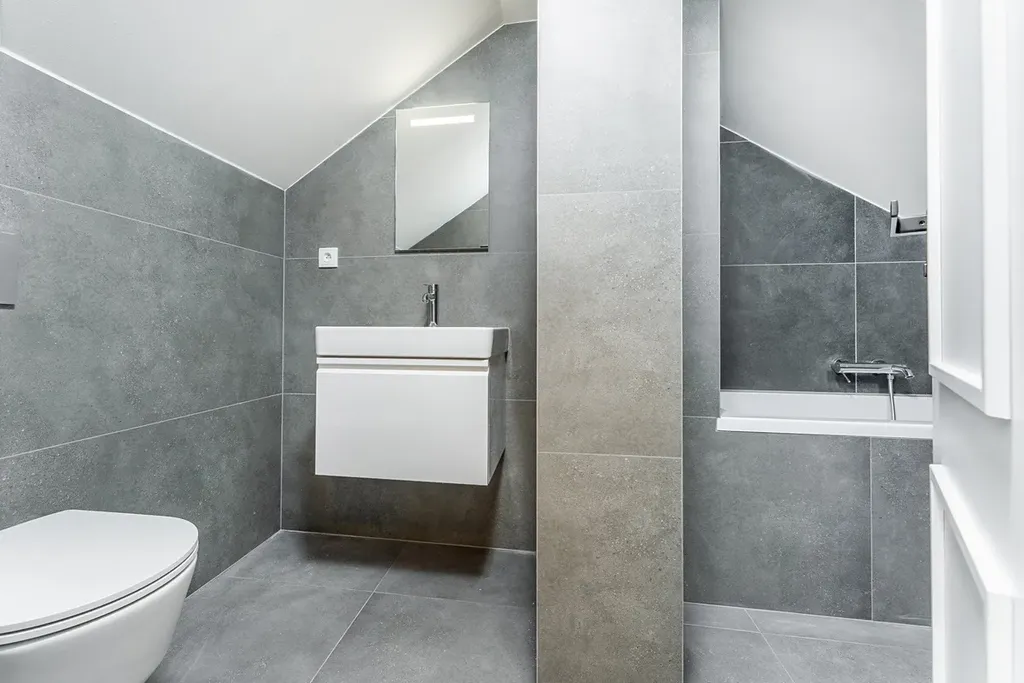 Vstupní úroveň bytu tvoří prostorná předsíň s místem pro vestavěné úložné prostory, světlý obývací pokoj s kuchyňským koutem, koupelna se sprchovým koutem a dvě samostatné ložnice. Horní patro nabízí klidovou zónu – průchozí pokoj ideální jako pracovna či knihovna, oddělenou šatnu a hlavní ložnici s vlastní koupelnou a vanou, která poskytuje maximální komfort a soukromí.