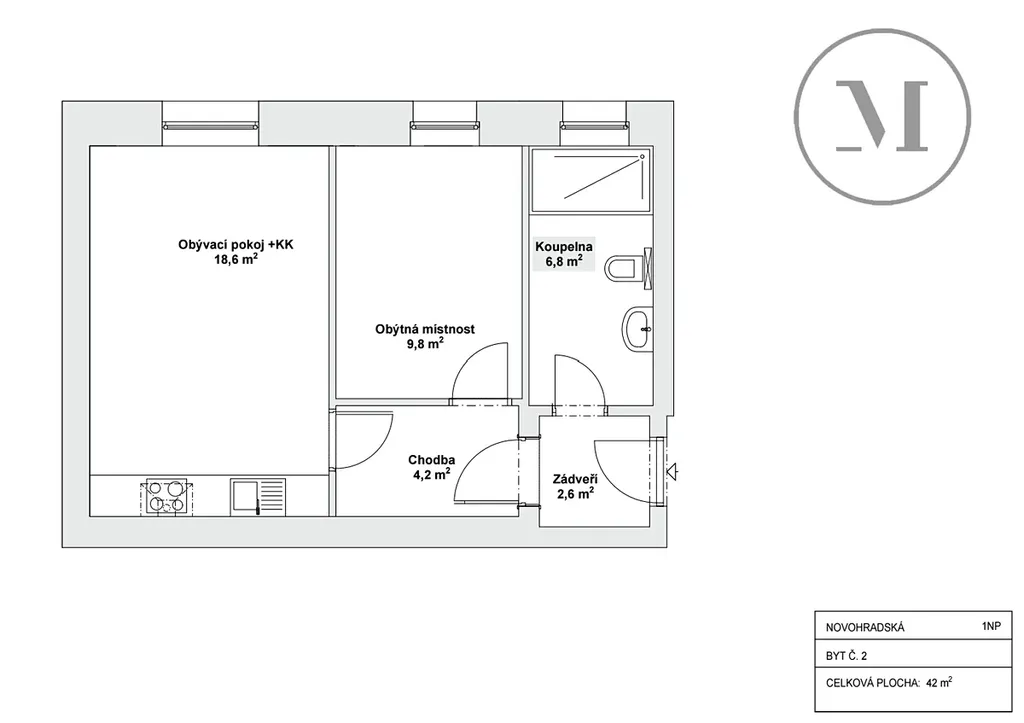 Byt 2+kk | 42 m² – 15 500 Kč / měsíc