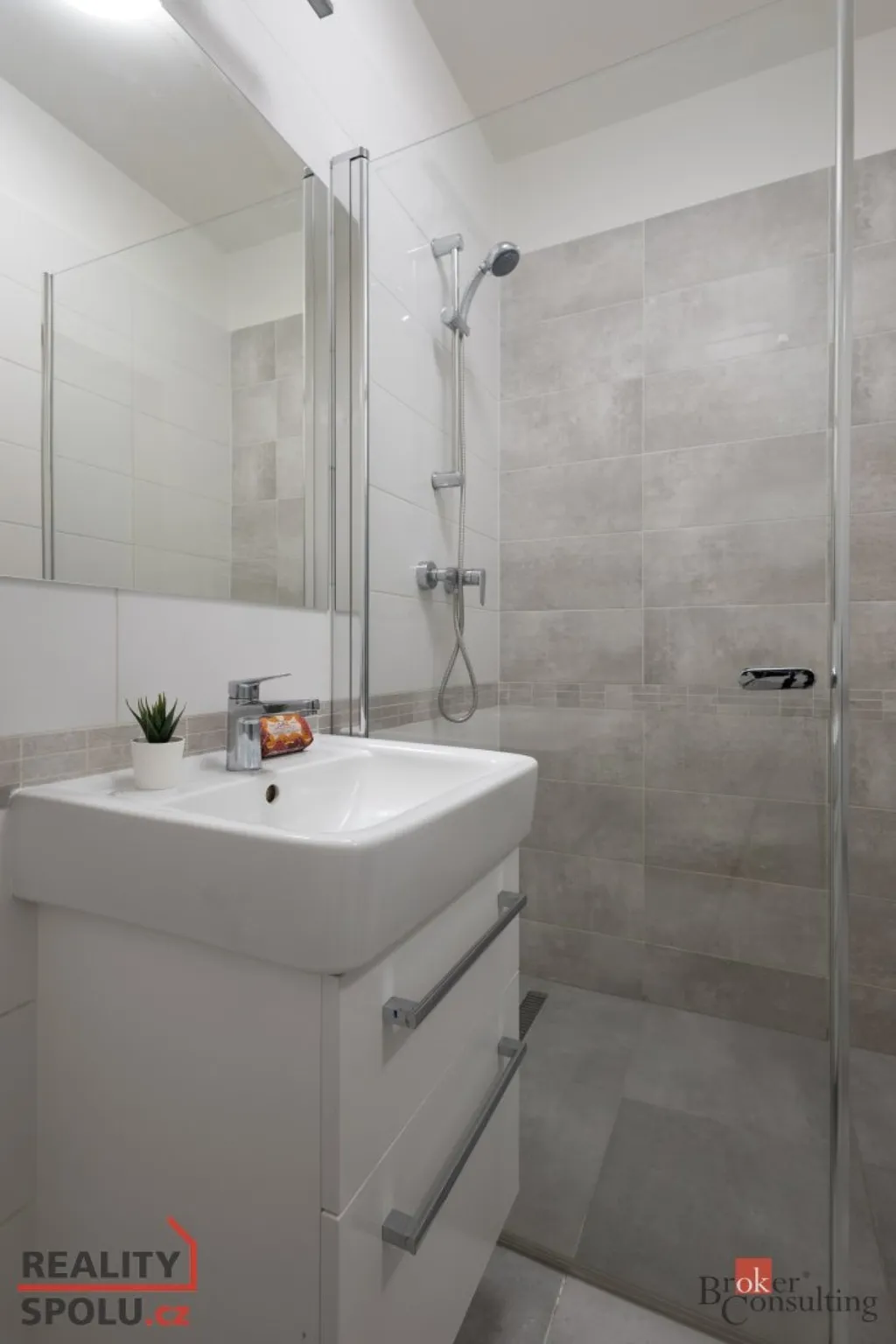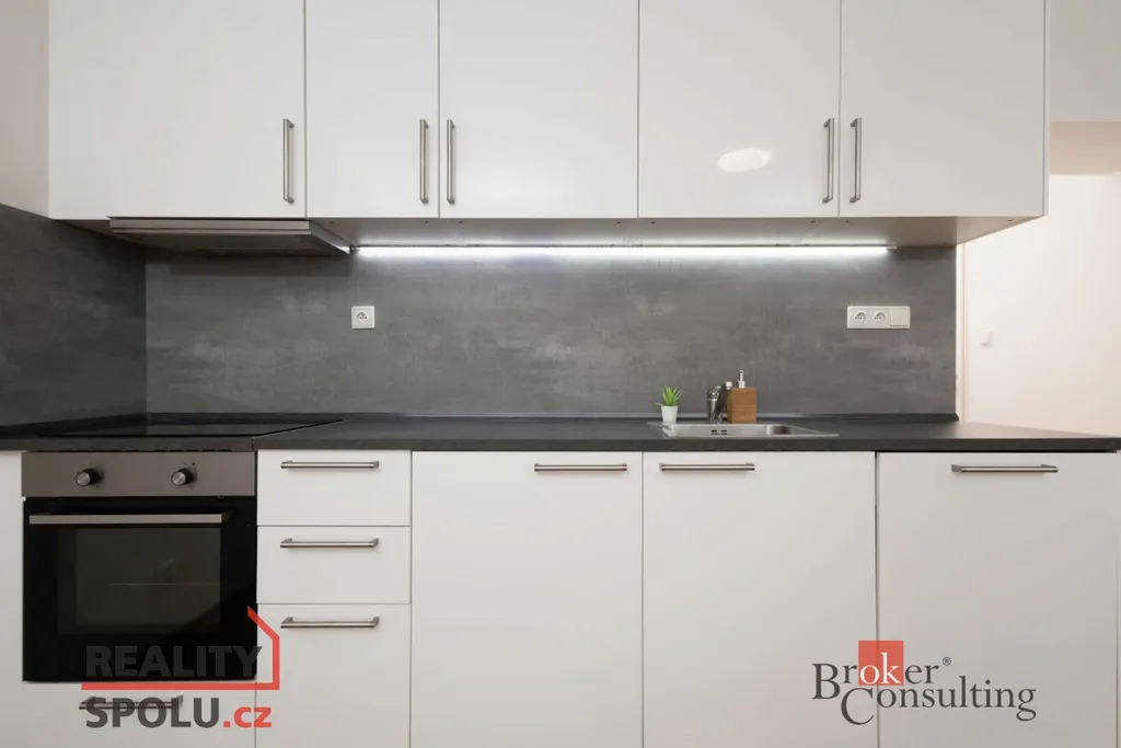 Moderní vybavení: Kuchyňská linka je osazena spotřebiči (indukce, el. trouba, myčka, digestoř). Samostatné WC a moderní koupelna se sprchovým koutem jsou samozřejmostí.