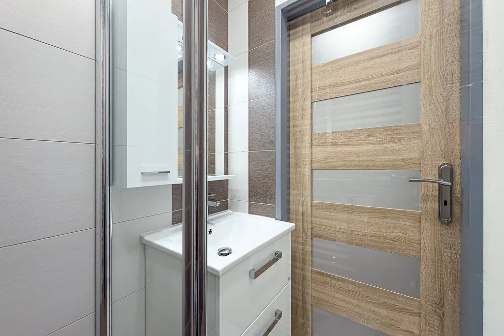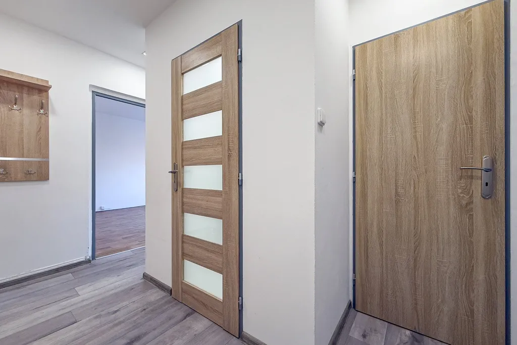 Byt se skládá z kuchyně, chodby, koupelny se sprchovým koutem a umyvadlem, samostatného WC, obývacího pokoje a druhého pokoje.