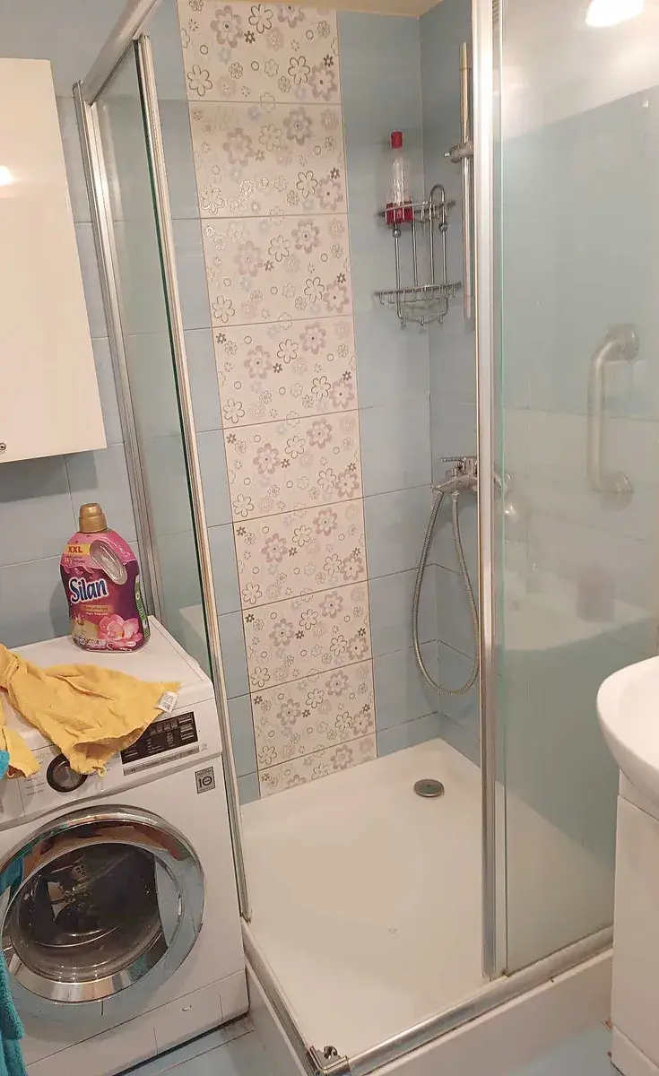 Byt je kompletně vybaven – obývací pokoj s koženou sedačkou a televizí, ložnice s postelí, kuchyně s kuchyňskou linkou, sporákem a myčkou, prostorná šatna, koupelna se sprchovým koutem, pračkou a WC.
