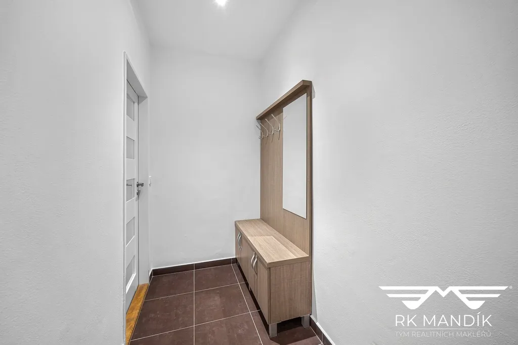 V bytě se nachází dva samostatné pokoje vybavené postelemi s rošty, pracovními stoly a volně stojící skříní. Koupelna je po kompletní rekonstrukci a disponuje sprchovým koutem, umyvadlem, zrcadlem a topným žebříkem. Úložné prostory zajišťuje vstupní chodba s botníkem a dále prostorná chodba s vestavěnou skříní a komodou. Byt se pronajímá zařízený dle fotografií.