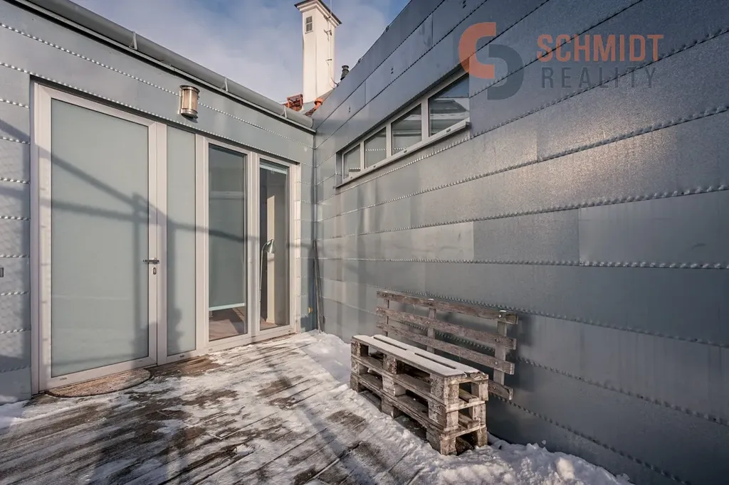 Do bytu vstupujeme přes pavlač na vlastní terasu, která je ve výhradním užívání této bytové jednotky a poskytuje příjemné místo k posezení a vychutnání ranní kávy a cigaretky :-), při východu slunce.