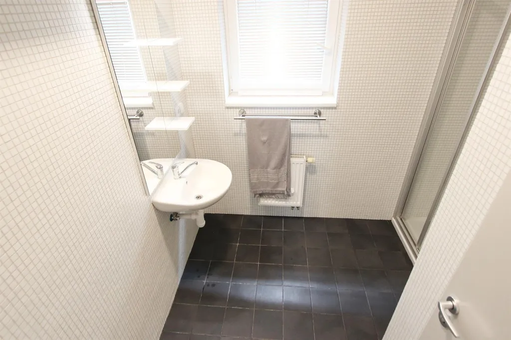 Koupelna je vybavena sprchovým koutem, umyvadlem a přípojkou na pračku- račka není součástí pronájmu. V areálu je možnost využití veřejné prádelny- 1 praní za 60 Kč.. WC samostatné.