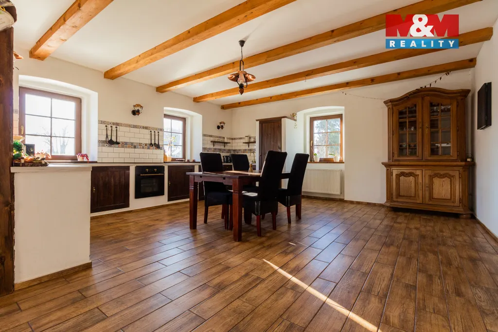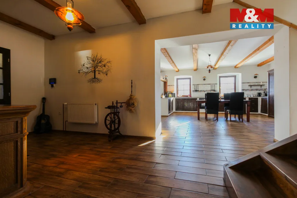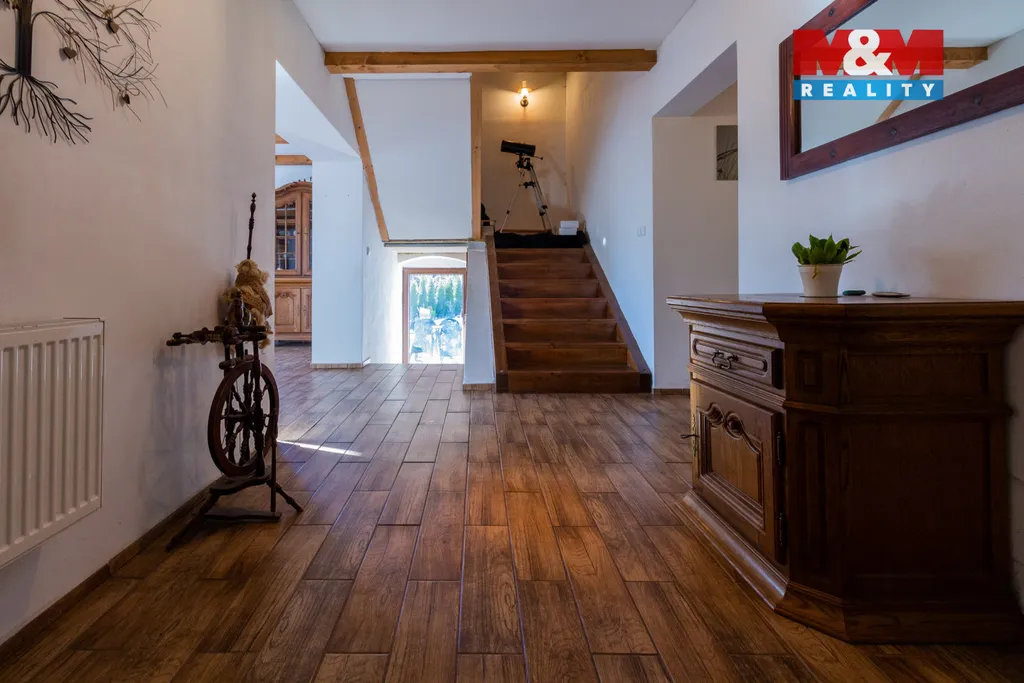 Ve výhradním zastoupení nabízíme prodej domu 3+kk se zastřešenou terasou, garáži a rozlehlou zahradou, který se nachází na pozemku o celkové ploše 3630 m2, v klidné části obce. Dům je po rozsáhlé rekonstrukci - nové podlahy, nové zateplené stropy, nová střešní krytina capacco, plastová okna, nový komín s nerezovou vložkou, elektřina v mědi, voda v plastu, vytápění kotlem na tuhá paliva, v každém pokoji je radiátor, ohřev vody bojlerem, veřejný vodovod i kopaná studna, momentálně septik a do konce roku bude vlastní ČOV (je již v ceně). K dispozici je i prostorná půda, kde je možné vybudovat další pokoje. Na dům navazuje prostorná garáž o velikosti cca 50 m2. Krásná a klidná lokalita přímo u lesa, vhodné jak k trvalému bydlení, tak i k rekreaci nebo jako investice za účelem pronájmu. V obci je obchod a pošta, jinak veškerá občanská vybavenost je v 15 km vzdáleném Krnově. Nemovitost je možné financovat úvěrem, který vám zdarma vyřídíme. Více informací v RK.