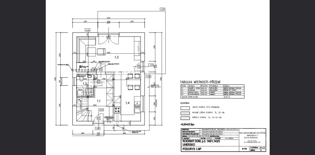 - Konstrukce domu: cihla Porfix 40.