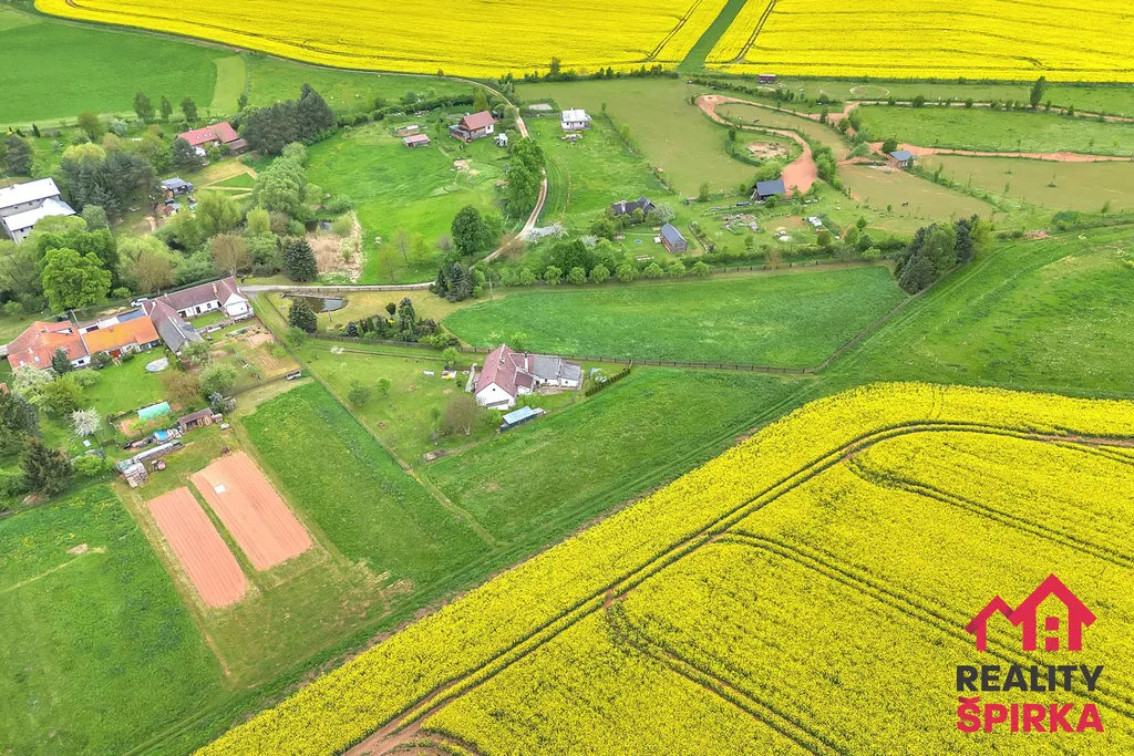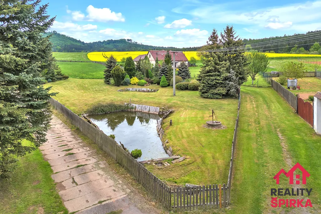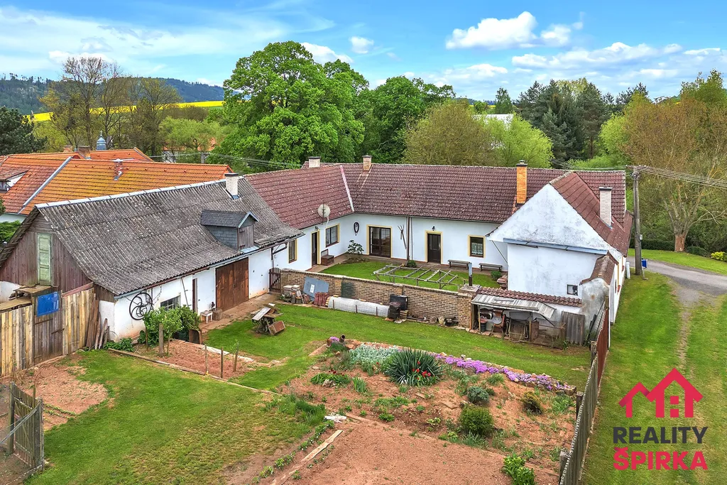 Dvorek ve tvaru „U“, ve kterém zaznívá jen bzučení včel a praskání dřeva v udírně. Za ním užitná zahrada s ovocnými stromy, zděná kůlna, dílna, garáž i vlastní studna. Celková výměra pozemků je 9.722 m² – prostoru je tu víc než dost.