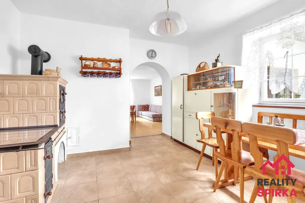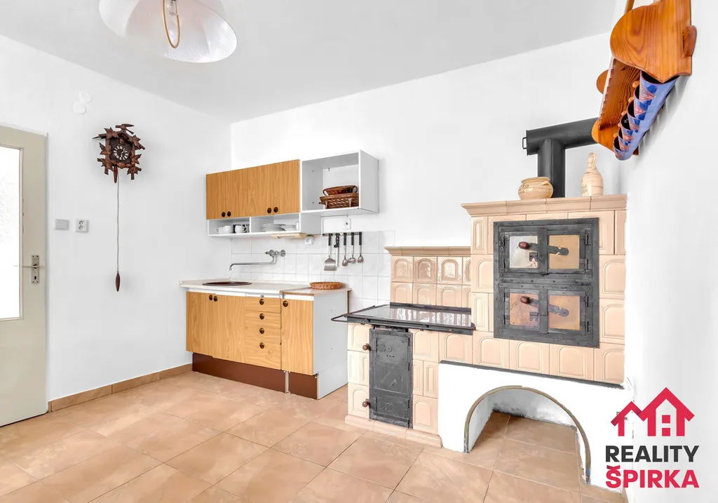Jednotka 2+1 má útulnou kuchyň s krásnými kachlovými kamny, dvě prostorné místnosti, novou koupelnu, WC, spíž a místnost se sedačkou a výhledem do zeleně dvora. Nad tím vším se vznáší velká půda, ideální k dalšímu chalupářskému rozletu.