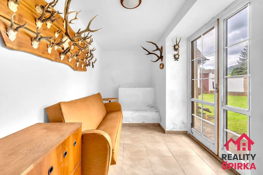 2+1 s útulnou kuchyní, kachlovými kamny, dvěma pokoji (jeden s krbovými kamny), novou koupelnou se sprchovým koutem, samostatným WC, spíží a malou relaxační místností s francouzským oknem a výhledem do zeleně uspořádaného dvorku.