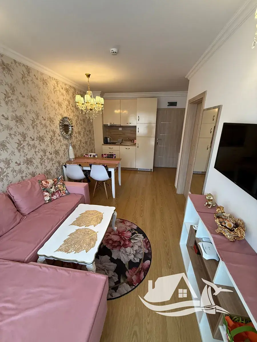 Sluneční světlo zalévá elegantní budovu a vy stoupáte do pátého patra, kde na vás čeká váš nový domov. Tento apartmán o dispozici 2+kk a velikosti 45 m² v komplexu Sweet Homes 6 na Slunečném pobřeží působí jako útočiště, kde se spojuje moderní komfort, klidné zázemí a blízkost moře.