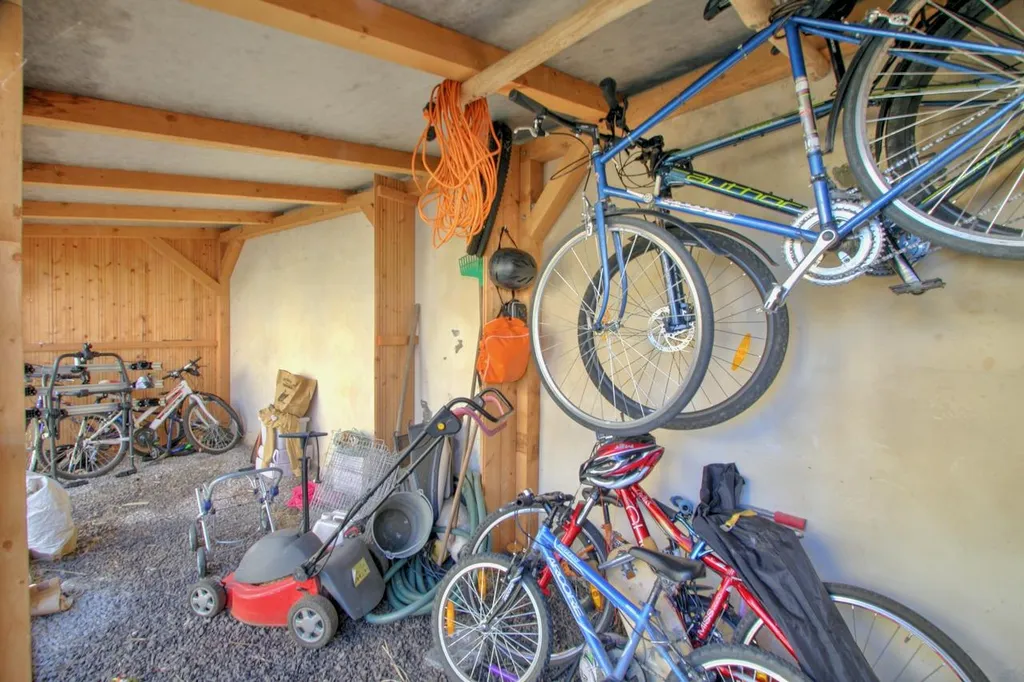 K bytu náleží jedno parkovací místo přímo před domem. Dále je možné užívat společnou zahradu za domem (pěstování zeleniny, grilování) a zahradní domek, která slouží jako kolárna.