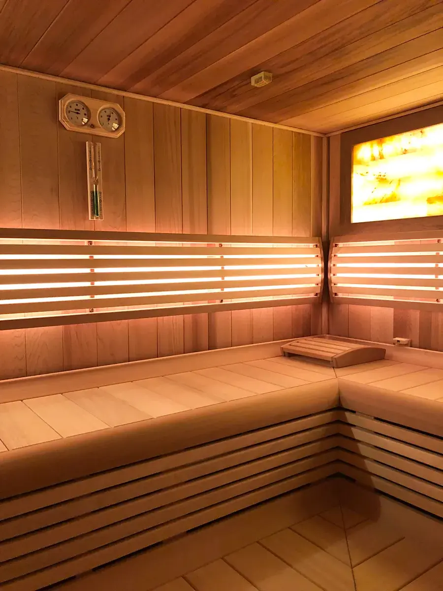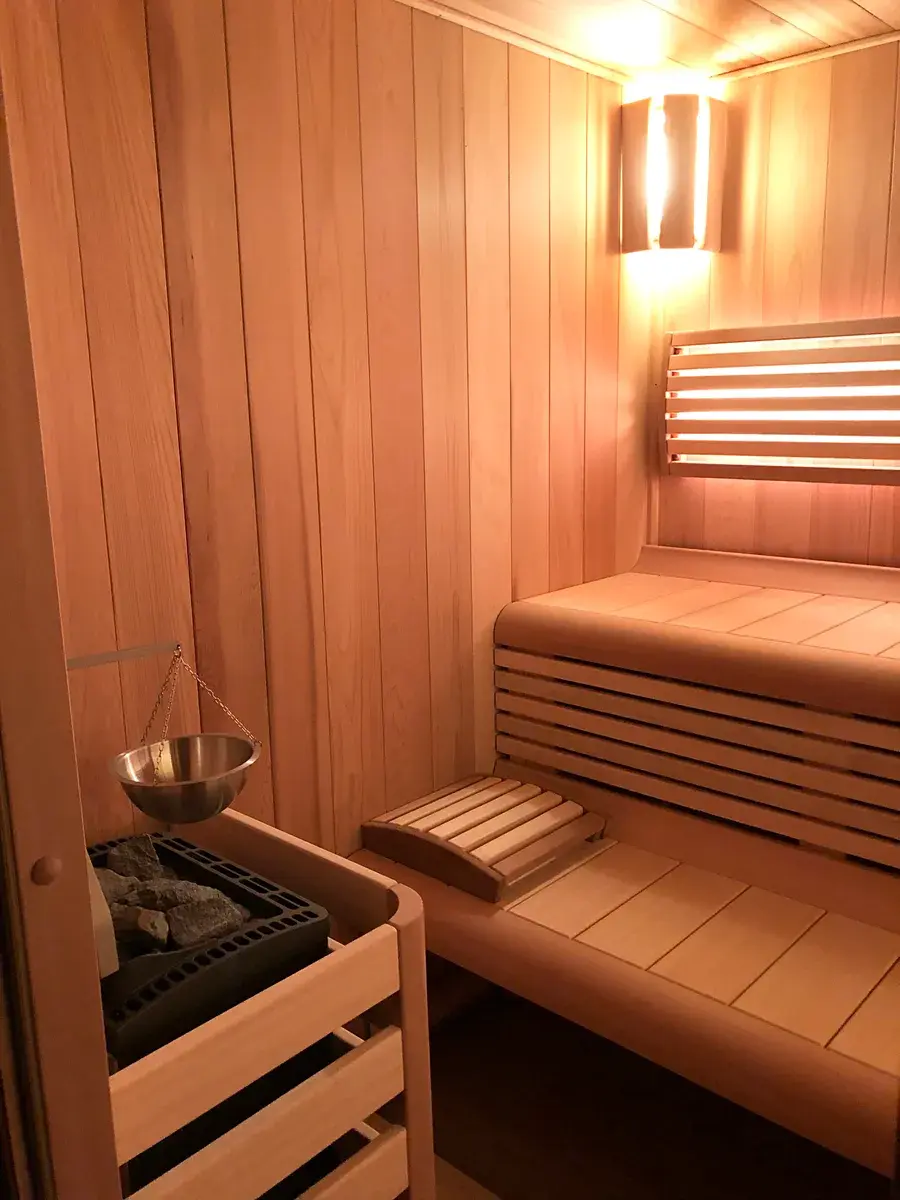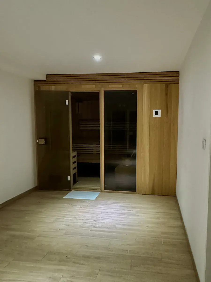 Spodní podlaží: soukromá wellness zóna se saunou pro 6 osob se solným panelem, sprchou, samostatným WC, prádelnou, úklidovou místností a skladem. Prostor lze využít i jako ateliér, pracovnu či studio.