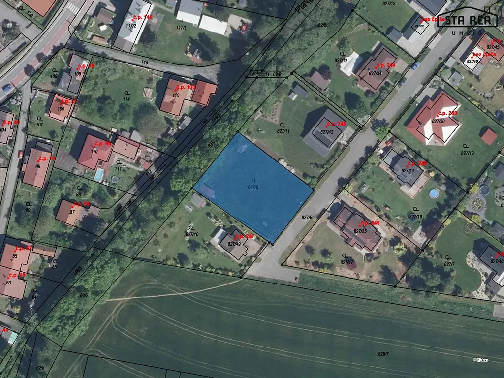 Pozemek nemá právní ani faktické vady. Je rovinný. Možnost napojení na základní inženýrské sítě - voda, elektřina, plyn, v budoucnu i kanalizace. Inženýrské sítě jsou přesně na hranici pozemku. Přípojka elektřiny již vybudována. Pozemek je přímo přístupný z veřejné asfaltové komunikace. Příjezdová cesta je celoročně sjízdná pro osobní vozidla. Kvalita pohledových horizontů je výborná. V docházkové vzdálenosti je k dispozici základní občanská vybavenost - základní škola, sít obchodů a služeb, hřiště, atd.. V obci je zastávka autobusu a také zastávka vlaková.