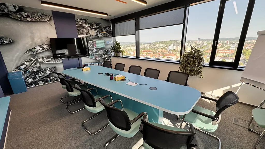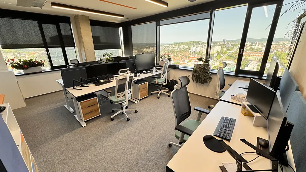 Prostory v budově jsou plně klimatizované, prosvětlené denním světlem a z 20. podlaží se otevírá nádherný výhled na panorama Brna.