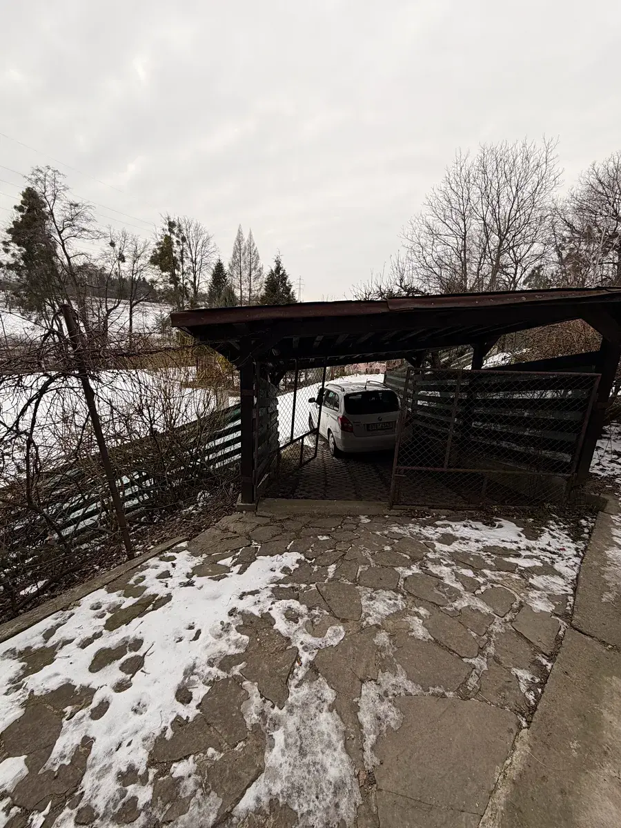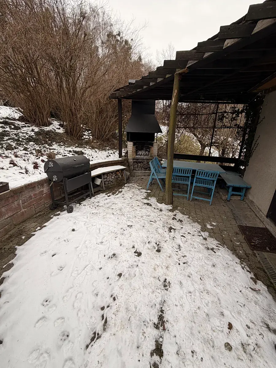Na pozemku stojí stavba, která je využívaná jako chatička se společenskou místností, zavedené WC, možností přespání v podkroví a s úložnými prostory v přízemí.