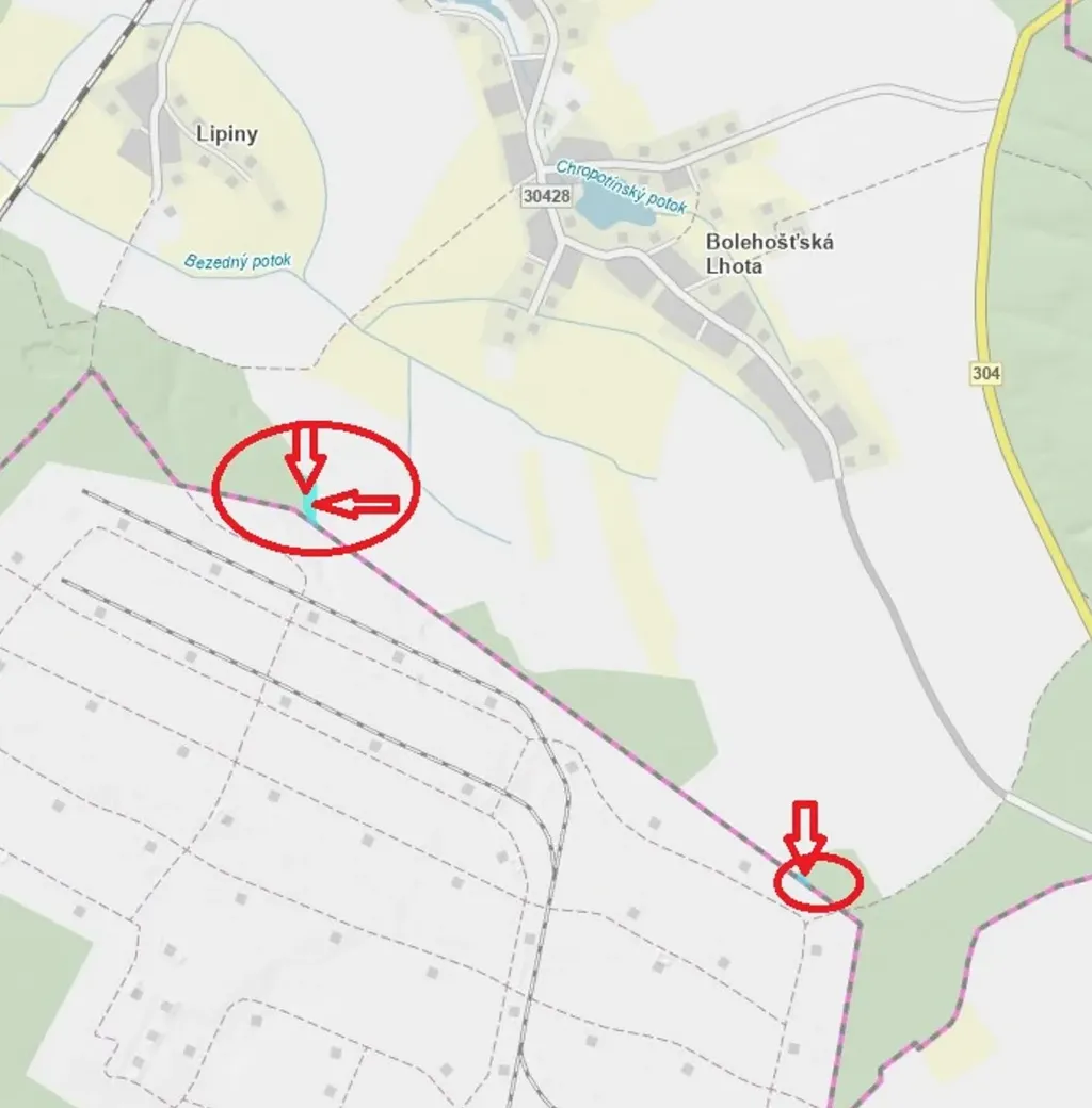 - p.č. 492 vedená jako lesní pozemek o celkové výměře 414 m2 (holina),