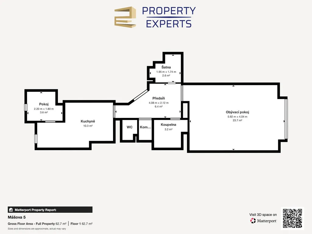 Byt prošel po ukončení předchozího nájmu částečnou rekonstrukcí a je vybaven novou kuchyňskou linkou s myčkou na nádobí. Přestože je kategorizován jako 1+1, za kuchyní se nachází další menší místnost, Kterou lze použít např. jako malou pracovnu. Na vstupní centrální chodbu, ze které je přímý přístup do všech místností bytu (vyjma zmíněné malé ložnice) navazuje též šatna s vestavěnými regály. V bytě je natažena strukturovaná kabelová datová síť. Pro komplexnější pohled využijte připojenou 3D Matterport prohlídku nemovitosti.