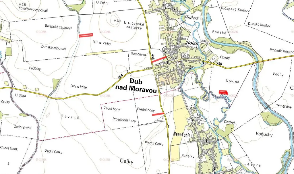 V k. ú. Dub nad Moravou jsou pozemky zapsány na: