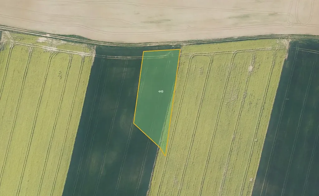 Jedná se o parcelu č. 449 o celkové výměře 4 520 m², vedenou jako orná půda. Pozemek je ve výlučném vlastnictví, bez spoluvlastnických podílů. Půda se vyznačuje vysokou bonitou s úředně stanovenou hodnotou 12,88 Kč/m², která je nadprůměrná nejen v rámci daného katastrálního území, ale i v celorepublikovém srovnání. To potvrzuje velmi dobrou produkční kvalitu půdy a její dlouhodobý zemědělský i investiční potenciál.