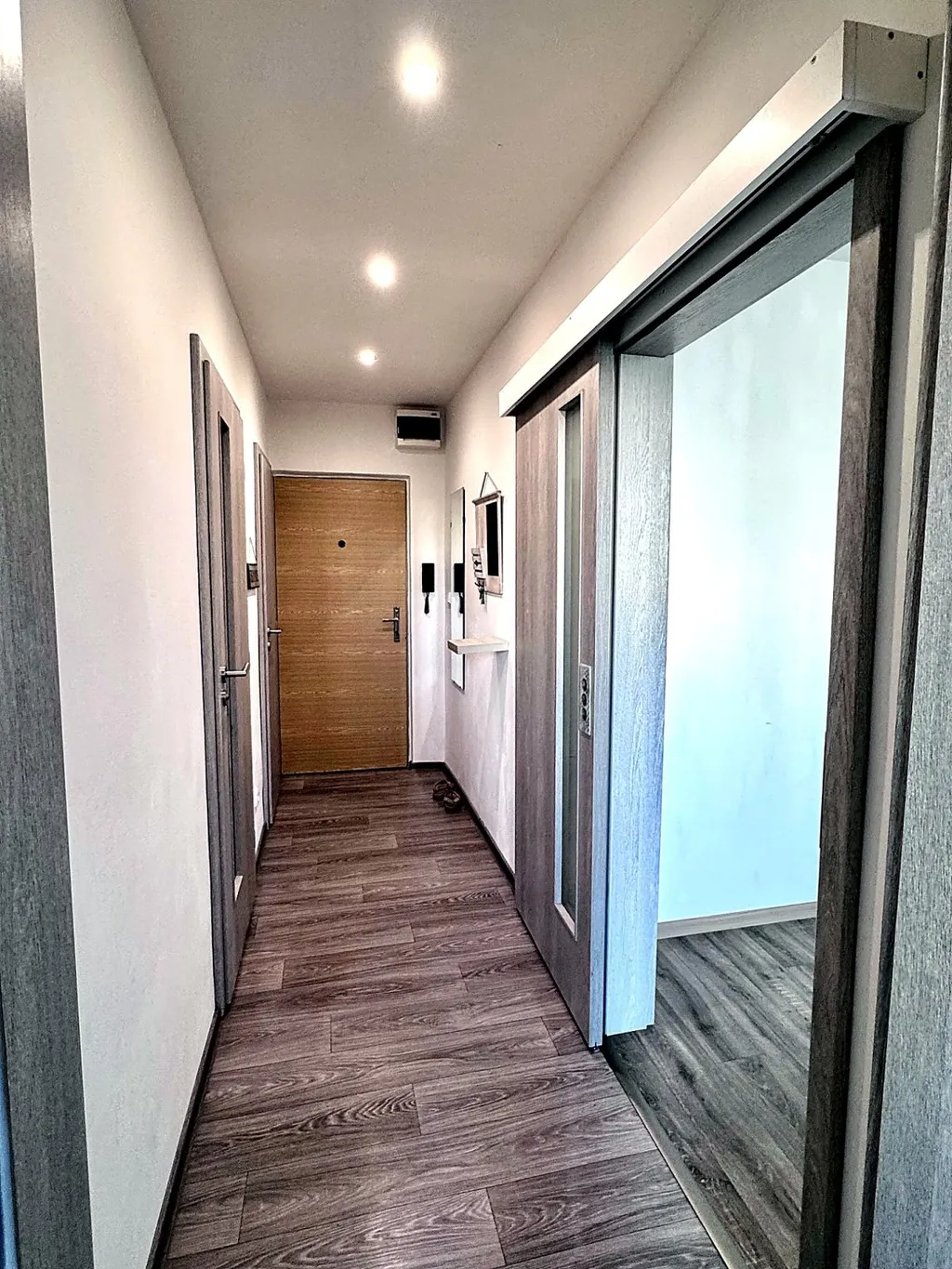 Dispozice nabízí prostornou vstupní chodbu, šatnu, koupelnu a samostatné WC, dále kuchyni s jídelním koutem a samostatný pokoj. Byt se pronajímá částečně zařízený dle fotografií.