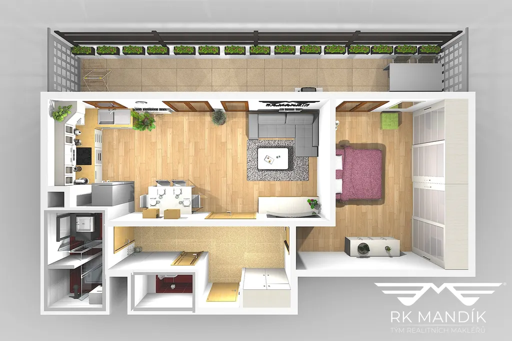 Připravujeme k dlouhodobému pronájmu byt o dispozici 2+kk s terasou, který nabízí komfortní a klidné bydlení v žádané lokalitě s výbornou dostupností do centra města.