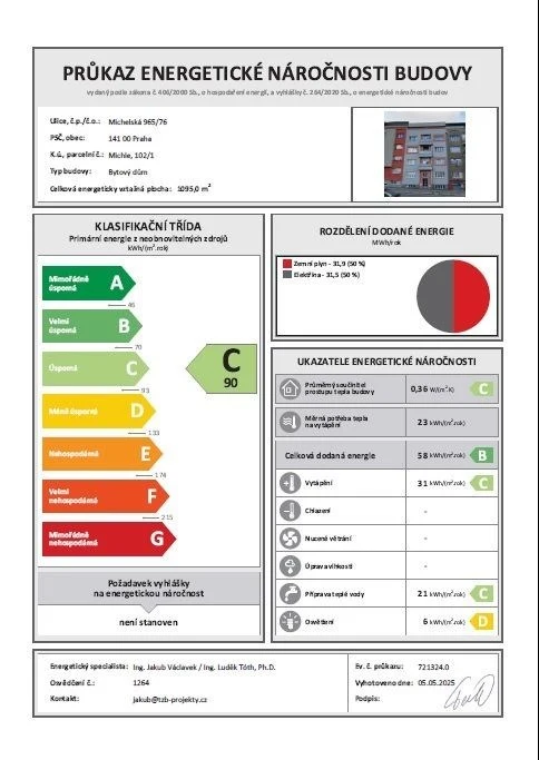 Prodej bytu 1+1 (36 m2) / družstevního podílu v dobře udržovaném a zatepleném bytovém domě, který se nachází v atraktivní části městské čtvrti Praha 4 Michle. Byt v družstevním vlastnictví je situována v polosuterénu cihlového domu a skládá se z vstupní místnosti s kuchyňským koutem, jednoho pokoje, a dále je zde koupelna s WC. V domě je k bytu k dispozici sklepní kóje. V bytě jsou plastová okna s izolačními dvojskly, el. vytápění a ohřev vody boilerem, dále zaveden plyn k plynovému sporáku. Vlastník družstevního podílu / bytu tento aktuálně podnajímá a základ podnájem je 7.763 Kč/měsíc (stávající podnájemce má zájem popřípadě bydlet nadále a počítá se zvýšením částky za podnájem, tedy je ideální investiční příležitostí pro investora, kdy v opačném případě neinvestora činí výpovědní lhůta tři měsíce). Podnájemce dále hradí měsíční zálohy na služby spojené s užíváním bytu a na 1 osobu činí celkem 298 Kč (vodné/stočné, svoz odpadu, světlo a úklid spol. prostor), dále podnájemce hradí dodavateli služeb měsíční zálohy na elektřinu cca 900 Kč a plyn 700 Kč. Celková měsíční platba do fondu oprav a záloha na služby činí 1.730 Kč tj. fond oprav 1.432 Kč + záloha na služby 298 Kč.
