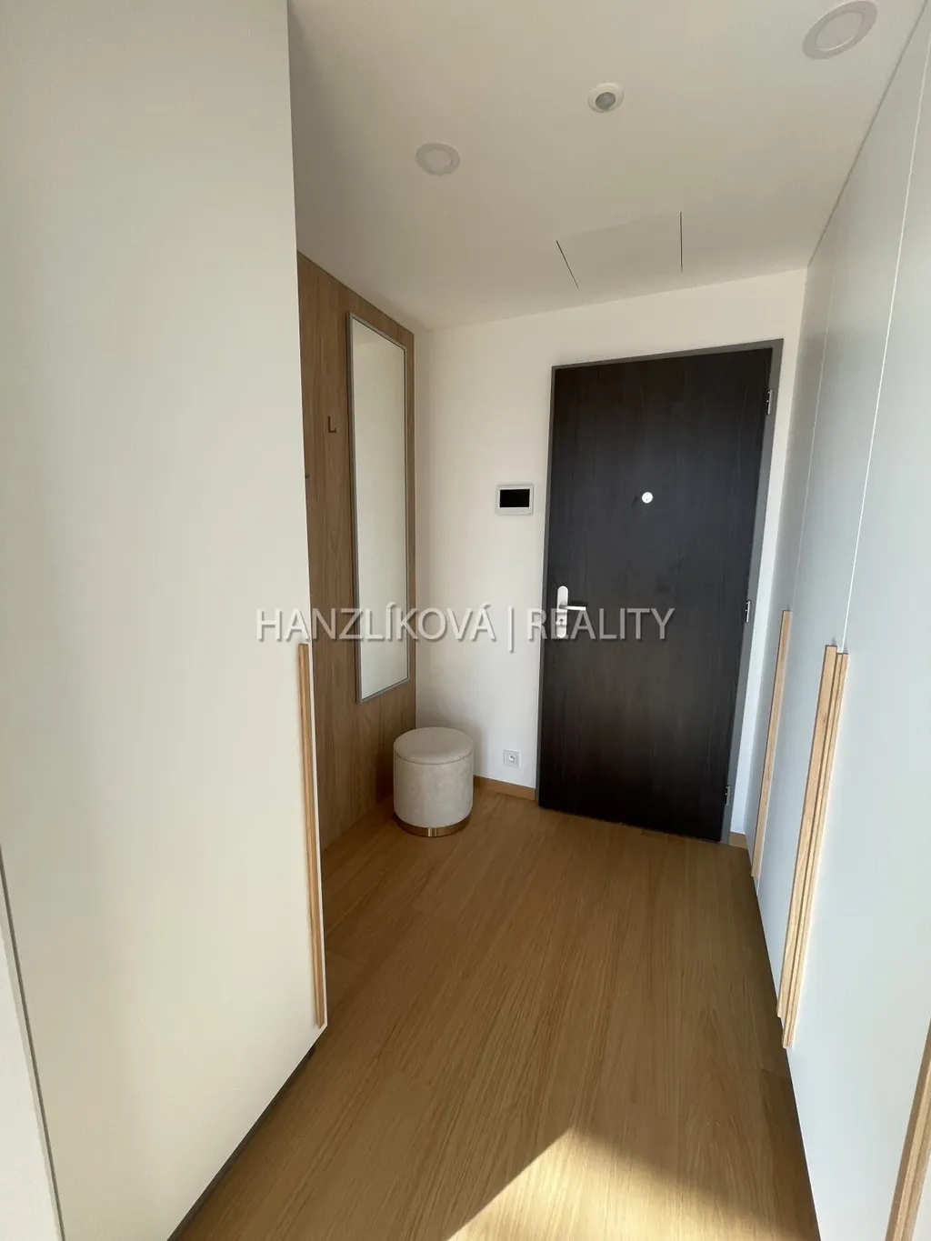Byt je vybaven kuch. linkou včetně všech spotřebičů, úložným prostorem v předsíni, má klimatizaci a venkovní žaluzie. Parkovací stání je garážové, s prostorným sklepem.