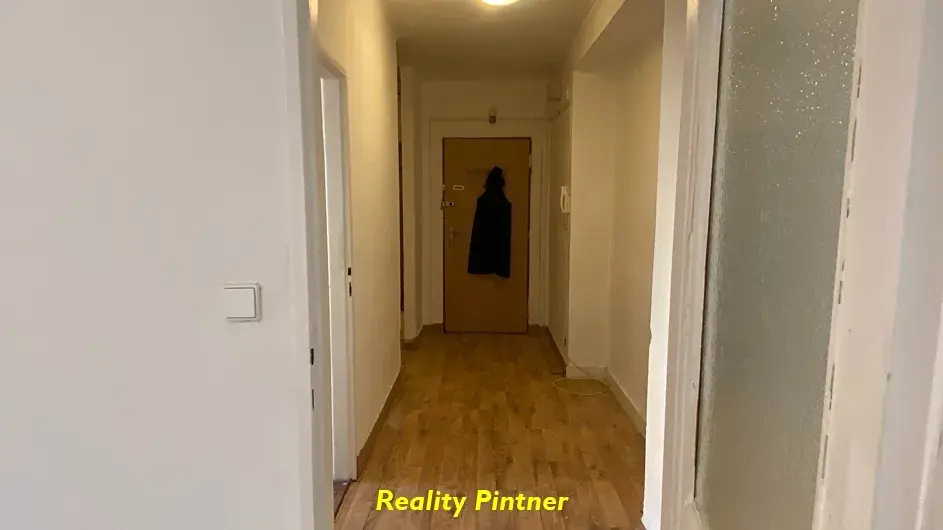 Byt je spíše v původním stavu a je ve zvýšeném přízemí. Má však plastová okna přibližně 3 m nad terénem a v nich stínění. V kuchyňském okně je i sušák na prádlo. V kuchyni je plynový sporák a praktická zděná spíž. Byt nabízí bez vybavení, pouze v kuchyni je stůl, dvě židle a všude základní osvětlení. V bytě je přípojka optického internetu. Nájemce si o něj může požádat.