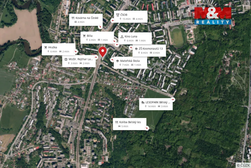 Velkou předností je lokalita – pár minut od domu se nachází veškerá občanská vybavenost (obchody, školy, školky, zdravotnická zařízení, MHD), zároveň je pár minut chůze vzdálen Bělský les, ideální místo pro relaxaci, sport a procházky zelení.
