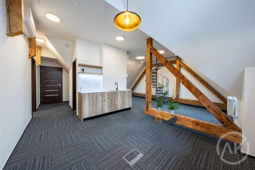 Už z fotky vidíte, že se nebudete muset stydět. Místo je po kompletní renovaci, kompletně klimatizováno a v ceně služeb máte jedno parkovací stání, úklid, slušné připojení k netu a celý objekt je pod alarmem. Dolů k návštěvám běhat nemusíte, dostanete vlastní klapku a necháte si odpovědět Dobrý den, vaše veličenstvo, mohu prosím dále?
