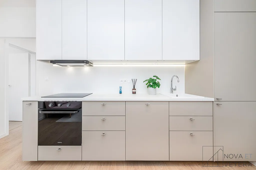 Byt právě prochází kompletní rekonstrukcí, která zahrnuje nové rozvody elektřiny, vody a odpadů, moderní podlahy, kvalitní obklady a dlažbu italské značky Marazzi, novou koupelnu a toaletu se sanitou Grohe a zcela novou kuchyňskou linku vybavenou vestavnými spotřebiči Gorenje s prodlouženou pětiletou zárukou. Nový majitel tak získá byt ve vysokém standardu, připravený k okamžitému nastěhování bez nutnosti dalších investic.
