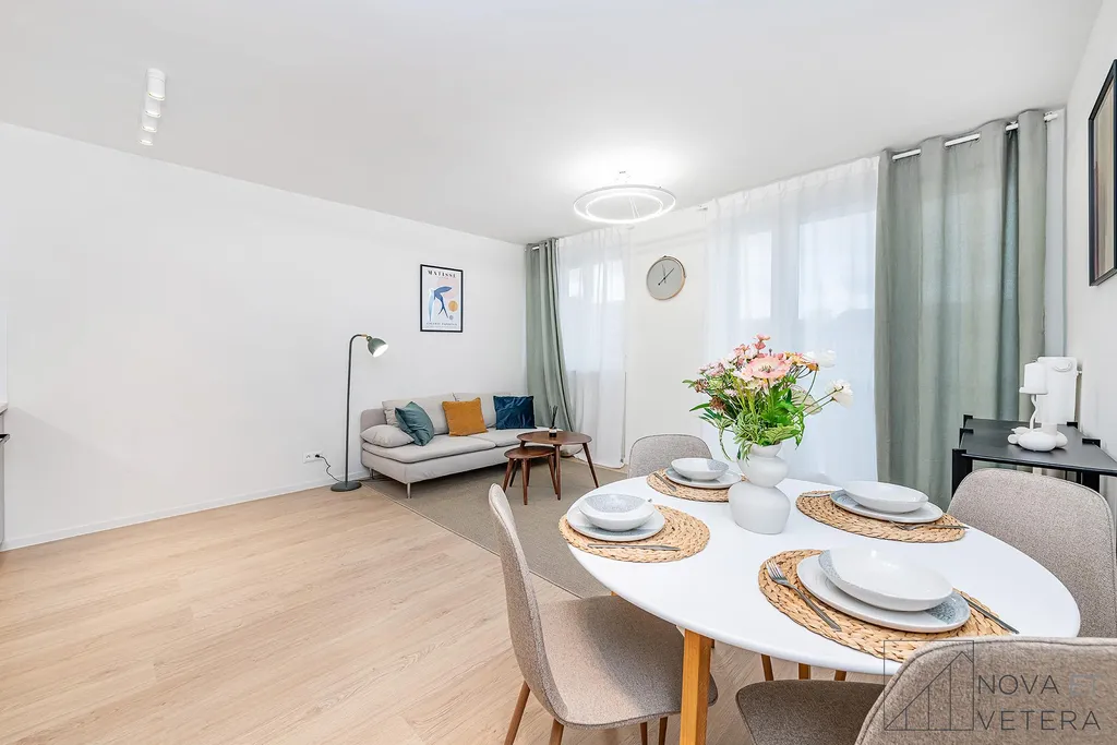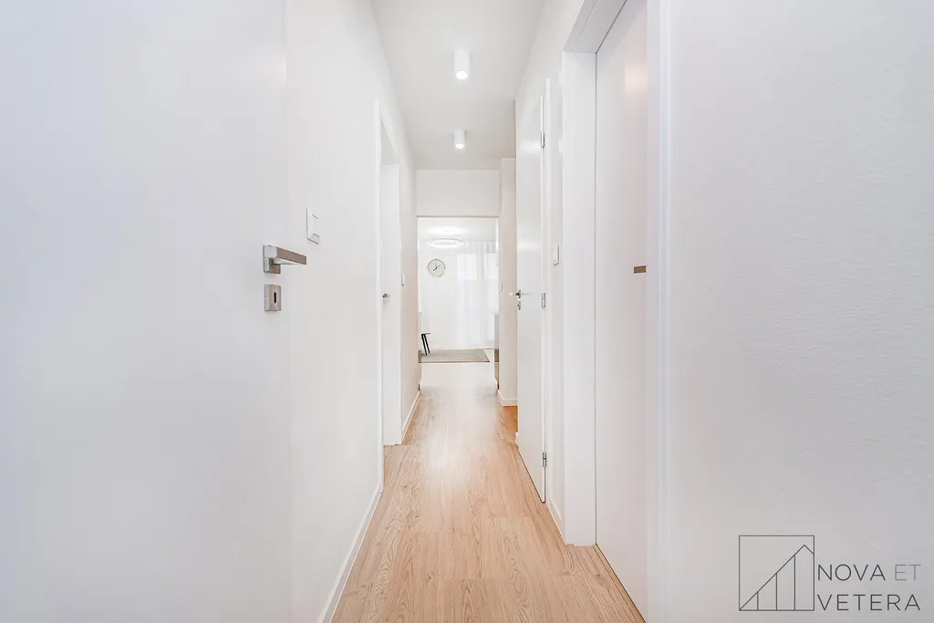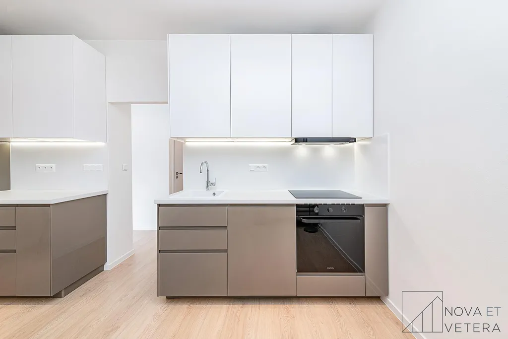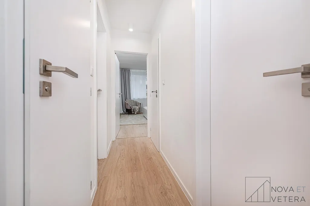 Byt právě prošel kompletní a kvalitní rekonstrukcí, která zahrnuje nové rozvody elektřiny, vody a odpadů, nové podlahy, moderní obklady a dlažbu značky Marazzi, koupelnu se sprchovým koutem se sanitou Grohe a také novou kuchyňskou linku se spotřebiči Gorenje s prodlouženou pětiletou zárukou.