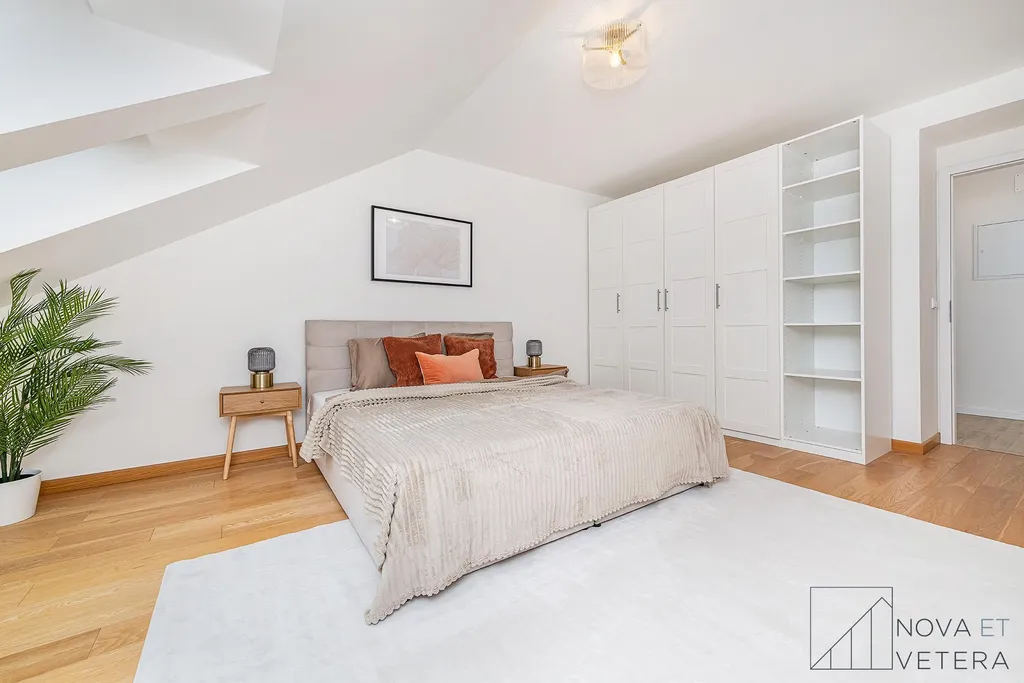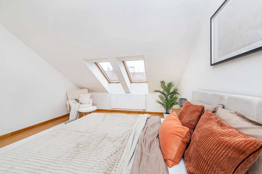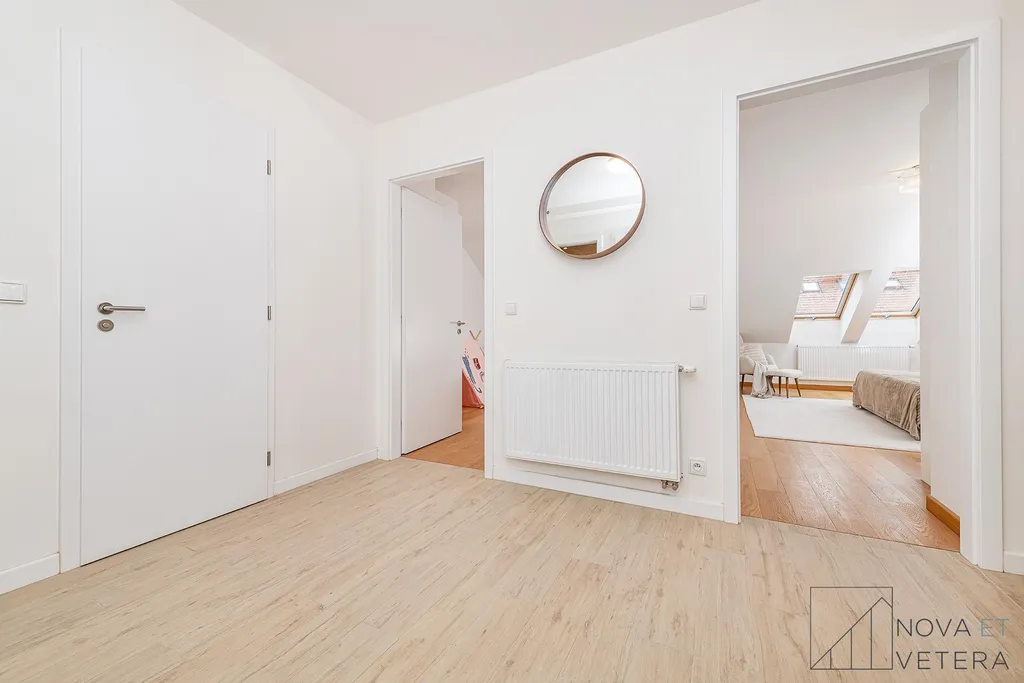 Na stejném podlaží se nachází ještě jeden podkrovní mezonet s dispozicí 5+kk ve stejném standardu.