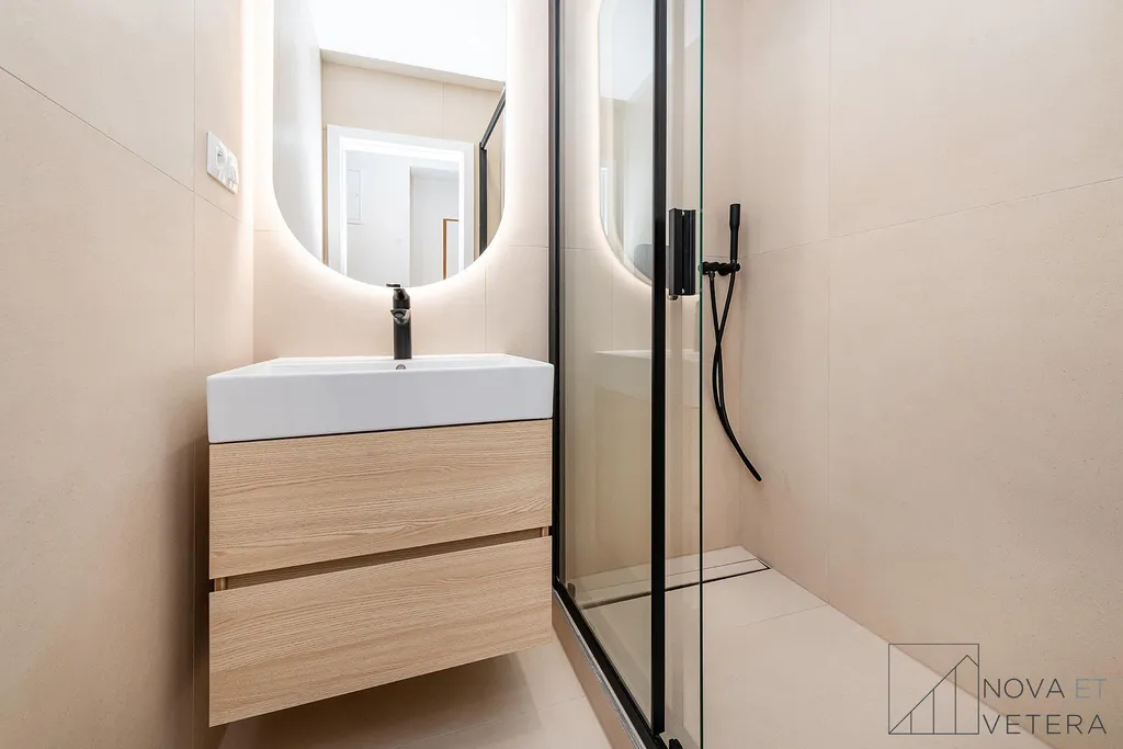 Byt právě prošel kompletní a kvalitní rekonstrukcí, která zahrnovala nové rozvody elektřiny, vody a odpadů, nová okna a podlahy, moderní obklady a dlažbu značky Marazzi, koupelnu se sprchovým koutem a sanitou Grohe a také novou kuchyňskou linku se spotřebiči Gorenje, na kterou je poskytována prodloužená záruka pět let.
