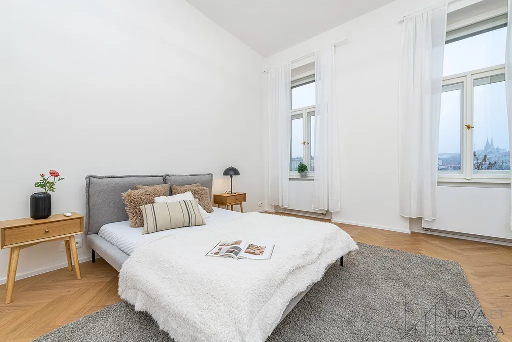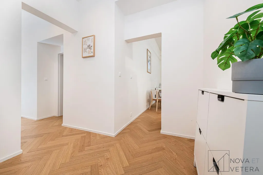 Byt právě prošel kompletní rekonstrukcí, která zahrnuje nové rozvody elektřiny, vody a odpadů, nová kastlová okna, moderní dřevěné podlahy , nové obklady a sanitu. Součástí vybavení je truhlářská kuchyňská linka na míru s prémiovými spotřebiči značky Bosch.