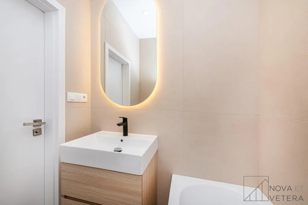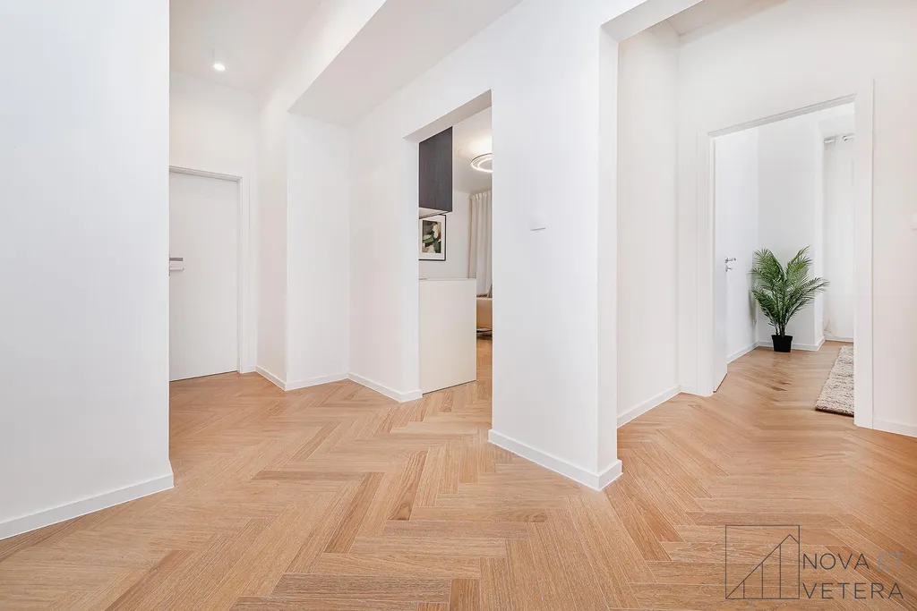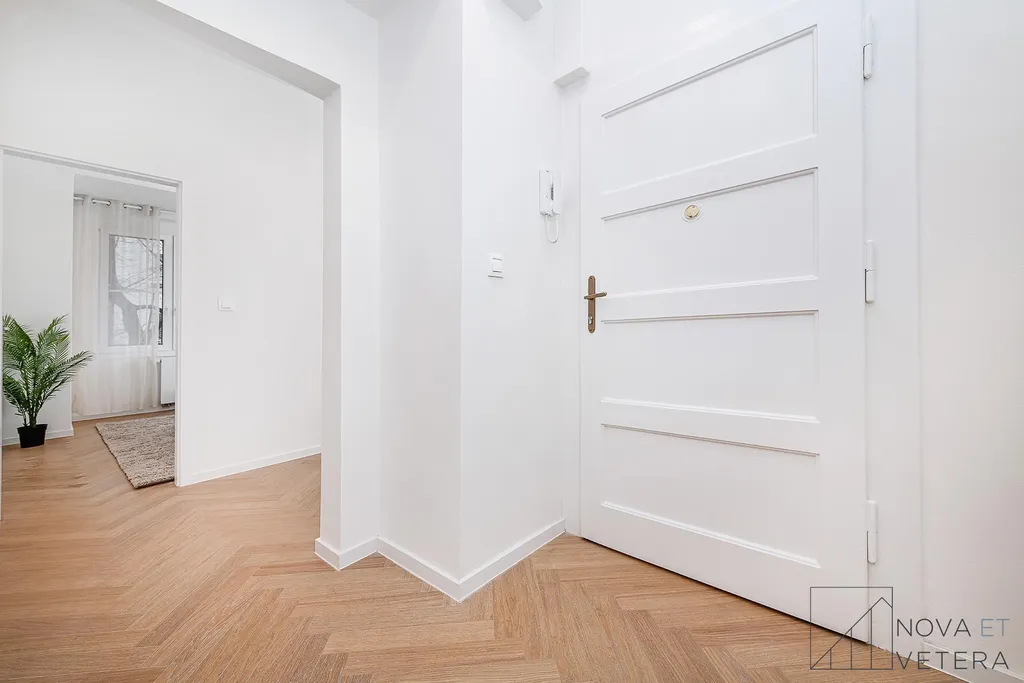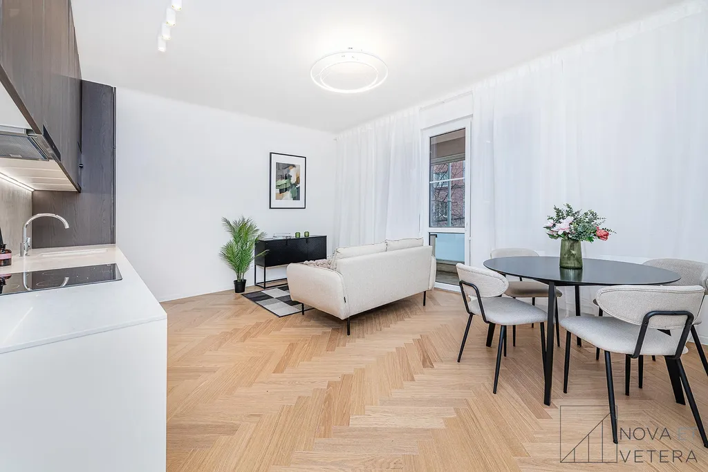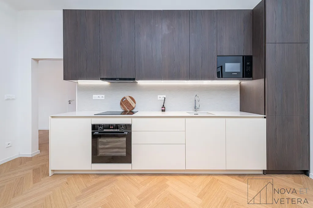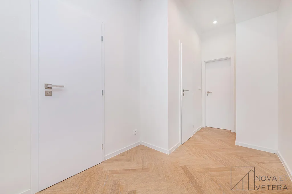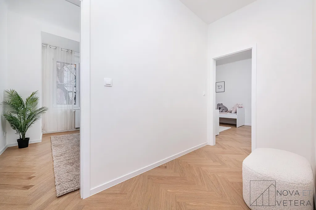 Byt právě prošel kompletní rekonstrukcí, která zahrnovala nové rozvody elektřiny, vody a odpadů, moderní podlahové krytiny, nové obklady a sanitu.Součástí vybavení je kuchyňská linka na míru se spotřebiči prémiové značky Bosch.