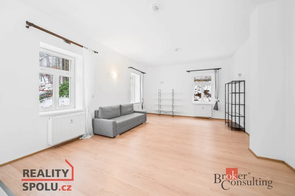 Příjemným benefitem je terasa o velikosti 7 m², orientovaná do klidné zeleně, ideální pro ranní kávu nebo odpočinek po lázeňské procházce. Dům i byt jsou obklopeny vzrostlými stromy a parkem, které zajišťují výjimečný přírodní klid, přestože centrum města je doslova na dosah.