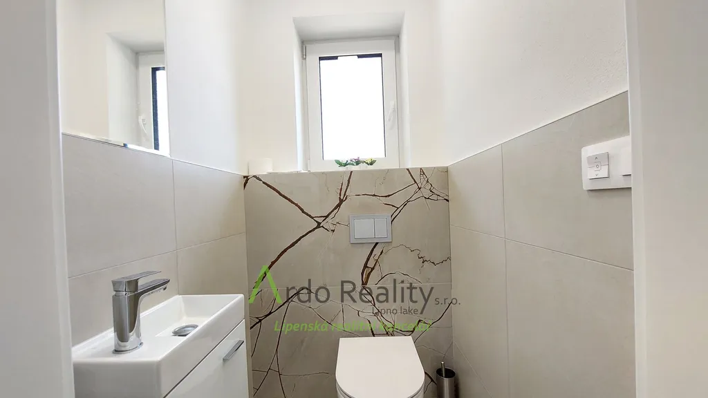 DLOUHODOBÝ PRONÁJEM na dobu určitou 5 let nebo dle dohody, s cílem udělat nájemcům radost, aby přijali a užívali celý dům i s pozemkem jako opravdoví vlastníci. Právě byla dokončena stavba nadstandardních šesti stejných domů u lázeňského městyse Frymburk, téměř na břehu Lipenského jezera. Prezentujeme zde bezbariérový bungalov, který je situován tak, aby prostorná terasa byla orientována jižně, s výhledem na jezero. Tento majitelé vybavili, ten Vám předkládáme jako vzorový a ten se bude pronajímat tedy jako poslední. Domy byly postaveny za použití nejmodernějších technologií, jsou energeticky velmi úsporné, vytápěné německým tepelným čerpadlem Viessman vzduch-voda, s podlahovým topením v celém domě. V obývacím pokoji se nachází ale i komín jako příprava pro krbová kamna nebo krb. Stavba je zděné konstrukce Porotherm 30 cm, zdi jsou izolovány 15 cm polystyrénem, stropní izolace je 18 cm, okna jsou trojitě zasklená a před všemi jsou instalovány rolety s elektrickým ovládáním. Střecha je valbové konstrukce a krytina keramická německého výrobce Roben. Půda je přístupná po skládacím schodišti. Dispozičně je dům řešen takto: Ložnice rodičů, která má k dispozici vlastní koupelnu se sprchovým koutem a WC s bidetovým mechanizmem, dále prostorný obývací pokoj s vybavenou kuchyní Schüller, jejíž pracovní deska se dřezem Blanco, se skříňkami a spotřebiči Elektrolux zabírá celou délku místnosti. Je provedena příprava napojení vody a elektro na americkou lednici s výrobníkem ledu. V tomto pokoji je právě možnost nainstalovat jednoduše krbová kamna a tak si zajistit ve studených dnech příjemnou atmosféru. V druhé části domu jsou další dva pokoje, z nichž lze rovněž vyjít na prosluněnou terasu. Na konci chodby je pak samostatné WC s malým umyvadlem a poslední, ale neméně důležitou místností je parádní koupelna s volně stojící vanou, sprchovým koutem a umyvadlem. Před hlavními vstupními dveřmi je ochranné zádveří, kde je venkovní jednotka TČ a také provedena příprava elektro na možnost instalace nabíjecí stanice pro automobil, z něhož je teprve vstup do domu. Zde je úschovný prostor, je tu místo na velkou odkládací skříň a je odtud vstup do technické místnosti. Ta může také skrývat další pohodlnou skříň pro ukládání potřebných věcí, hlavně je zde vnitřní jednotka tepelného čerpadla, dále pak tlaková nádrž s ovládáním čerpání vody a také moderní úpravna vody Watex, která zajistí tu nejkvalitnější pitnou vodu. Zbývá zde ještě dost místa pro pračku a sušičku. Největší devizou tohoto domu je velká venkovní terasa cca 40 m2 s krásným výhledem, která je ze dvou třetin krytá variabilní odsouvací střechou. Tato terasa je propojena se všemi obytnými místnostmi domu. Dešťová voda je svedena do podzemní retenční nádrže o obsahu 4000 litrů s možným využitím k zalévání. Parkování je řešeno pro dvě auta na vlastním pozemku u domu. Každý dům má své vlastní zabezpečovací zařízení Jablotron, napojené na pult ochrany s výjezdem. Připojení internetu zajišťuje společnost Starnet. Jak jsme již zmínili, na fotografiích vidíte vybavený vzorový dům. K pronájmu je připraveno ostatních pět plně dokončených domů, které po dohodě můžete mít zařízeny stejně, obdobně, anebo si je můžete zařídit nábytkem dle svých představ. Celý oplocený areál je v mírném svahu pod lesem, v okolí je krásná čistá příroda. Relaxovat se dá v letním období, vodními sporty, cykloturistikou kolem přehrady, houbaření a výšlapy po šumavské přírodě. V zimním období se nabízí běžkování a sjezdové lyžování na Lipně, v Rakousku a Německu. K břehu Lipenského jezera dojdete pěšky za méně než 5 minut, Český Krumlov je vzdálen 30 km, České Budějovice 55 km, přívozem přes vodu na hraniční přechod do Rakouska Guglwald asi 15 km. Další podrobnosti Vám rádi sdělíme při osobním jednání. Tato chatová osada je vzdálena jen 10 minut jízdy od lázeňského městysu Frymburk. Frymburk získal tento status v loňském roce a v brzké době zde lázně opravdu vyrostou.