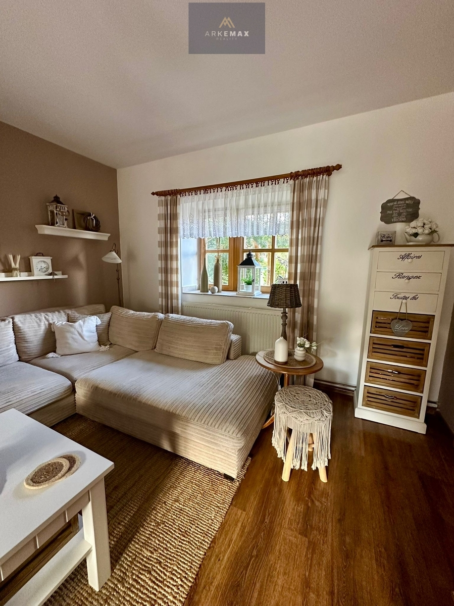 1. patro – útulný obývací pokoj s kuchyní, ložnice a koupelna s WC a wellness