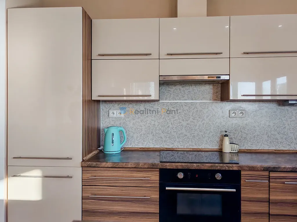výbava nábytek: vybavená kuchyňská linka, 3x šatní skříň, L pohovka, obýváková stěna, stůl se 4 židlemi, 1x postel