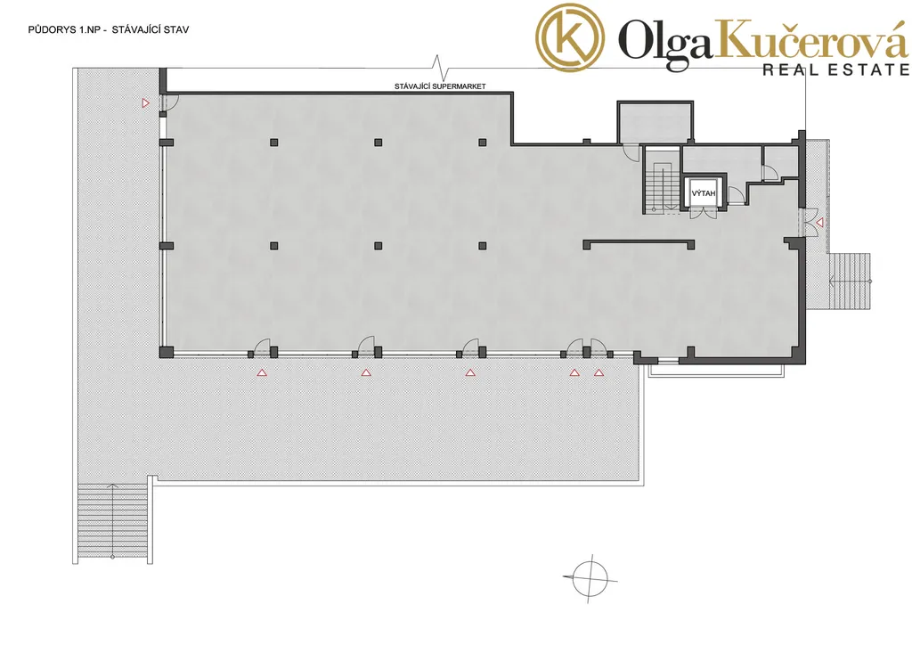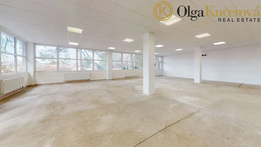 Celý prostor prošel náročnou a nákladnou rekonstrukcí, kdy byla instalována nová elektřina, osvětlení, rozvody vody, odpadů a tepla, nová plastová okna a dveře, zateplená fasáda, nová střecha. V současné době je prostor celý otevřený, nicméně objekt je v navrhnut tak, že jej lze jednoduše rozdělit na 5 samostatných prostorů po cca 85 m2, kdy každý prostor má svůj vlastní vstup z terasy a má svá vlastní měřidla vody, elektřiny a tepla. U každého vstupu se již počítalo s reklamou a je zde vyvedena elektřina. (K rozdělení prostor je k dispozici plán od arch. kanceláře). Vlastní terasa po celé délce objektu je skvěle viditelná z projížděních vozů a může sloužit například pro venkovní prodej, posezení, restaurační zahrádku, atp…